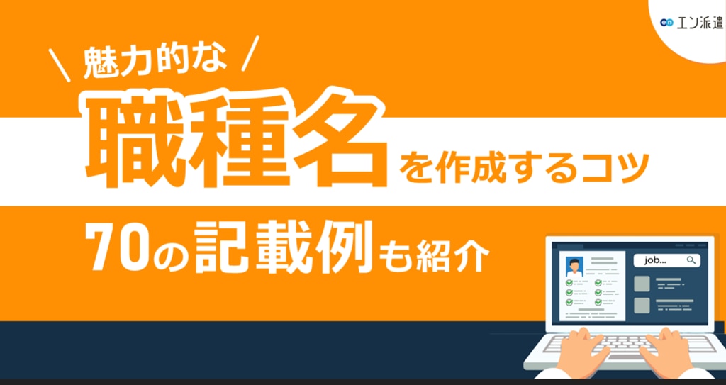 本資料では、派遣求人において魅力的な職種名を作成するコツについて詳しく解説します。求人で職種名が重要な理由から魅力的な職種名を作成するコツ、魅力的な職種名の記載例まで、わかりやすく解説しますので、ぜひ職種名の作成にお役立てください。